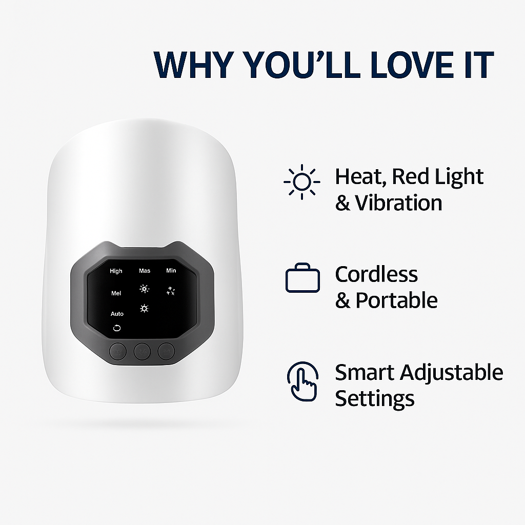 Heat • Red-Light • Vibration — targeted relief, wherever you are.